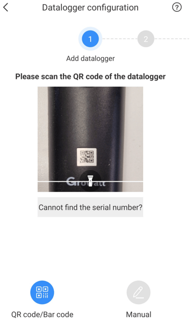 - trykk "+" oppe til høyre i appen og trykk på den aktuelle dataloggeren for å starte rekonfigurering.
