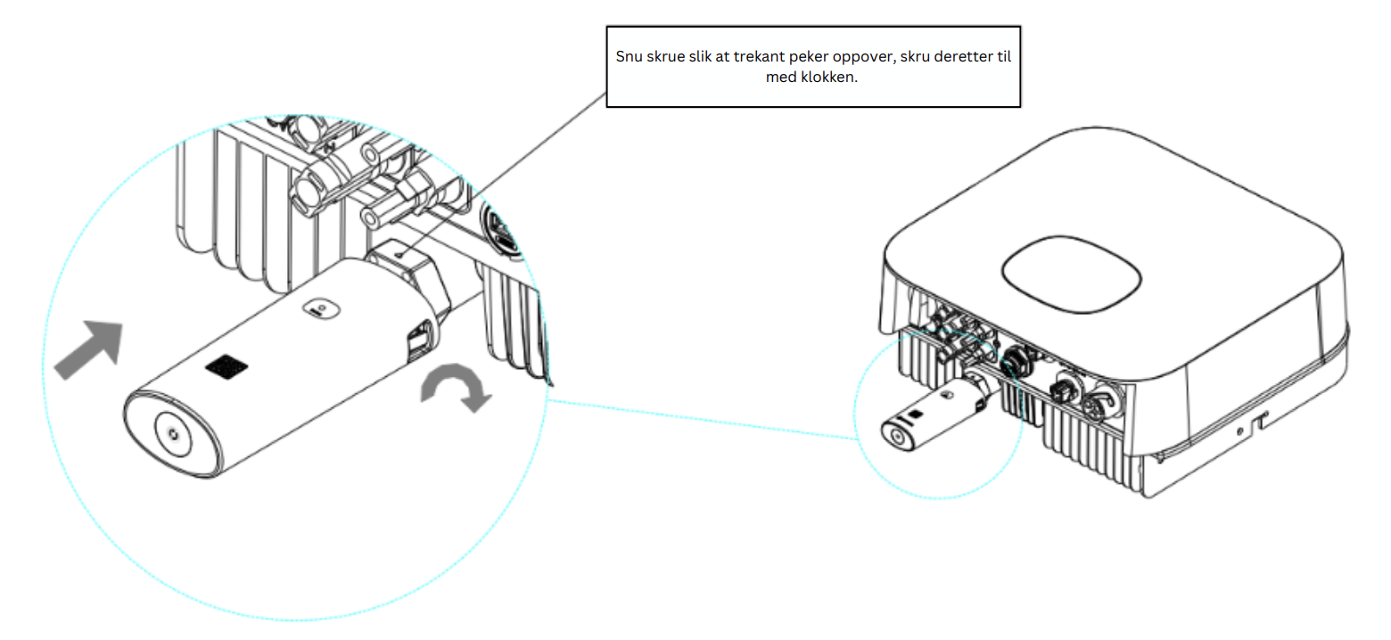 Etter at ShineWifi-X modulen er montert, skru på inverter hvis denne ikke allerede er på. Merk at oppsett av datalogger kun kan utføres når det er dagslys og panelene produserer nok til å møte inverterens krav om oppstartsspenning.